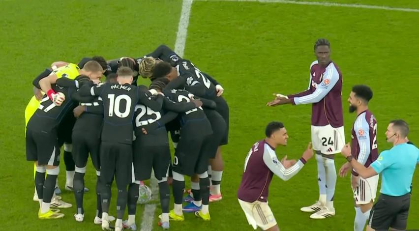 在下半场开始前,切尔西球员围在中圈进行喊话,这也导致比赛重新开始时间推迟。这个行为让维拉球员感到不满,阿马杜-奥纳纳、沃特金斯以及道格拉斯-路易斯都向裁判表达抗议,现场的维拉球迷也发出嘘声。